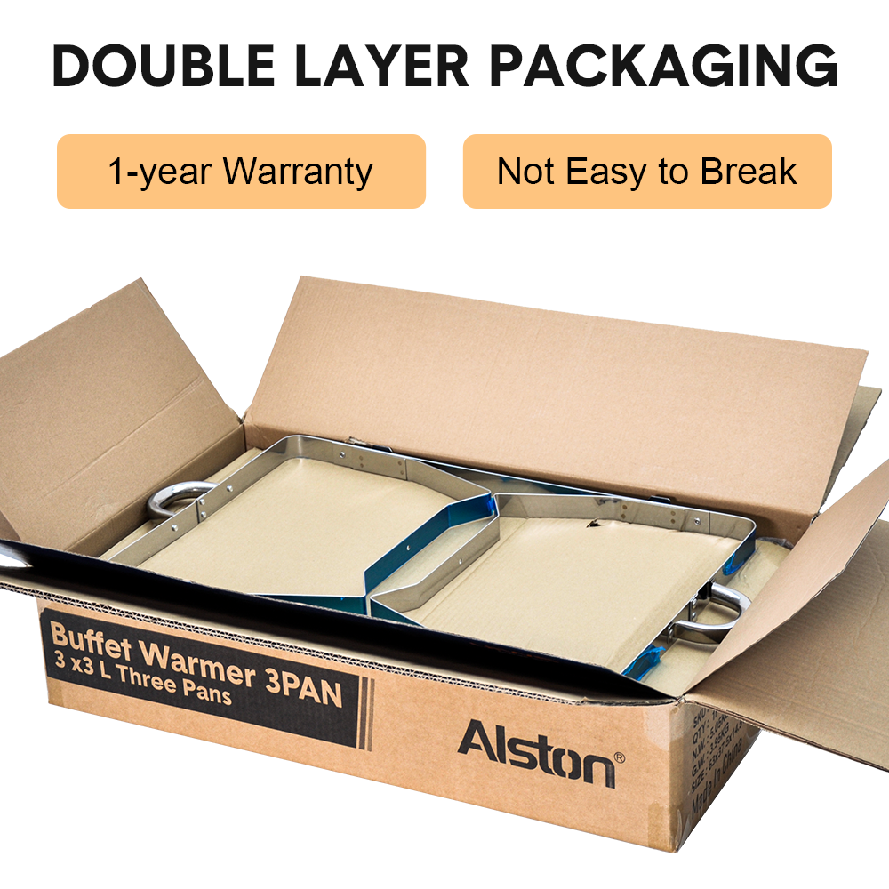 - 3 Pan Bain Marie: This chafing dish set contains 1 foldable frame,2 safety fuel holders,1 water pan,1 cover, and three 3L food pans which can can hold different foods at the same time.The chafing dish also has handles to ensure that the product can be moved with ease.