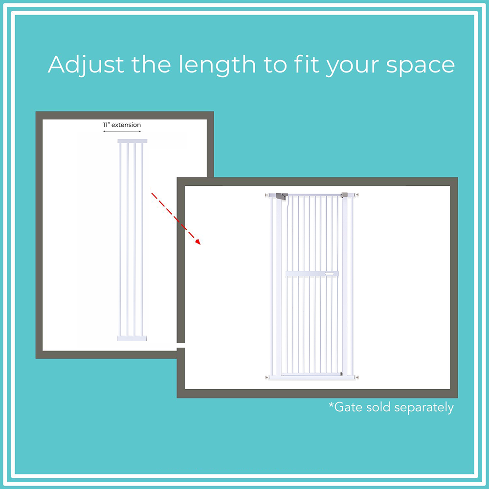 - Adjustable:The security gate product series comes with main gate with or without extension panels for adjustable width. You can choose optional parts of 10.5cm/21cm/32cm to extend your safety gate to fit your space.