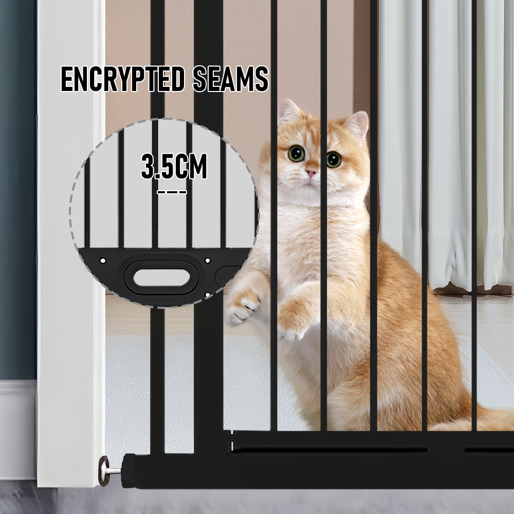 - 150cm Extra Tall Design: With a 3.5cm encrypted gap between the railings, this safety gate stands at 150cm extra tall, making it ideal for preventing even agile and climbing pets to jump over the gate.