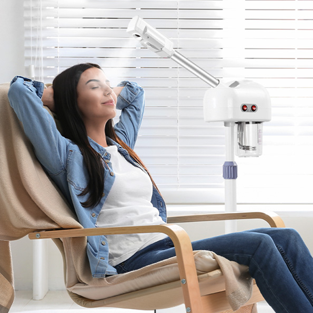 - Deep Cleaning and Hydration: With our professional facial steamer. the warm, moist steam helps to loosen dirt, impurities, and makeup residue, promoting thorough facial cleansing. Simultaneously, it hydrates the skin, improving moisture retention.