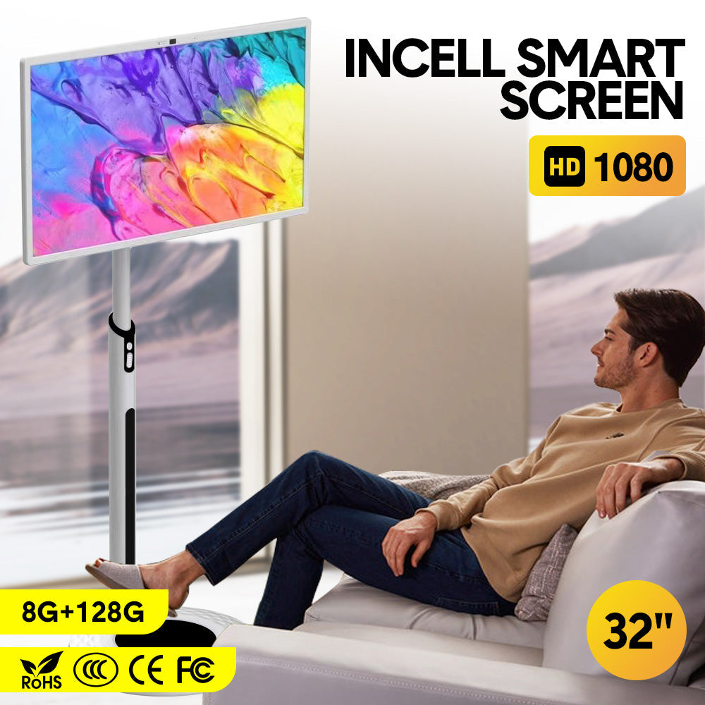 Alston Movable 32 Inch 1080P Smart Screen Rotatable In-cell Touch Screen Support Google Store Cast Screen with Built-in Battery HD Camera Android 12 8+128