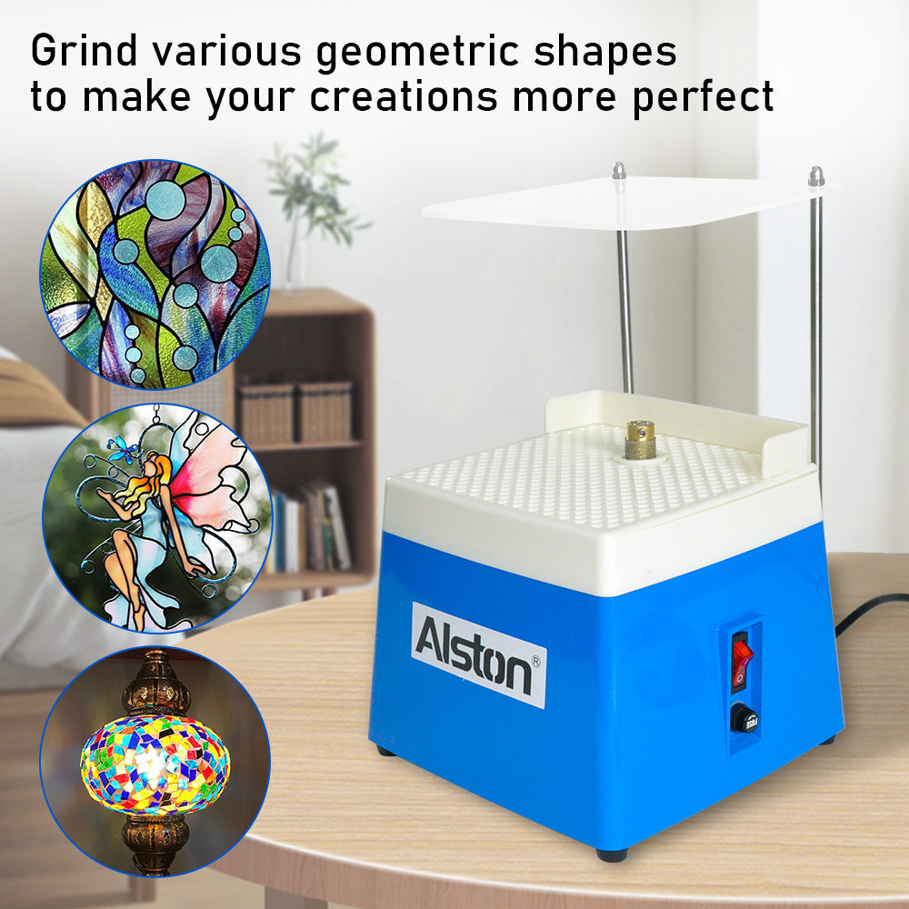 Alston 220V Portable Stained Grinders Glass Mini Power Glass Ceramics DIY Grinder Grinding Tool With Diamond Grinder Guard Tray Art Grinding Tool Blue