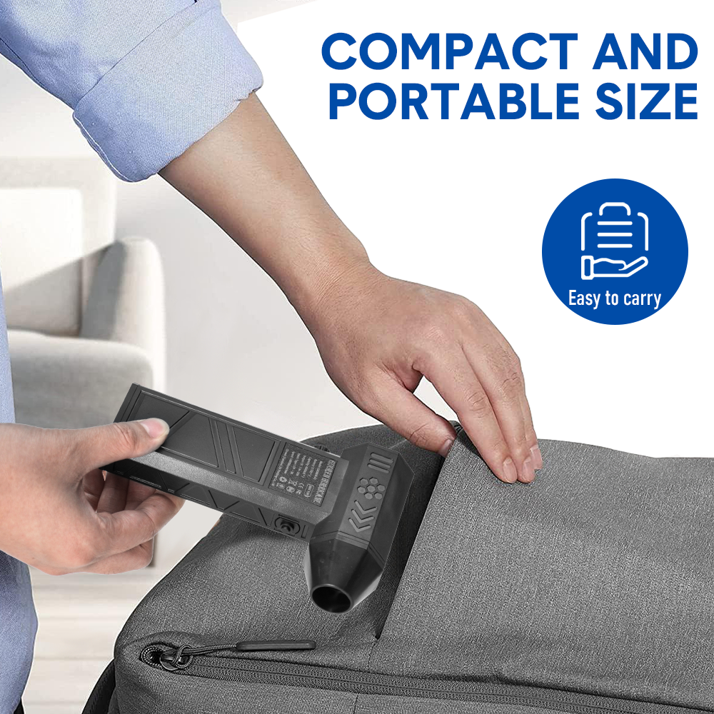 - Powerful Handheld Air Duster: With a high-speed motor that delivers wind speeds of up to 52 m/s, this mini air duster offers strong airflow to effortlessly blasts away dust and debris. Despite its strong power, the unit remains lightweight and cordless, so you can use it anywhere and it's super easy to handle.