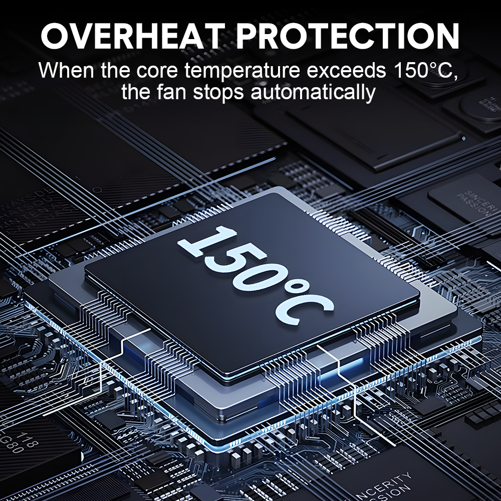- Safety and Overheat Protection: To ensure both user safety and device lifespan, this air fan includes built-in thermal protection. When internal components exceed 150 degrees, the fan automatically shuts down to prevent any damage or accidents. Further, vents on its enclosure enhance circulation, thereby rapidly dissipate heat and prevent it from overheating.